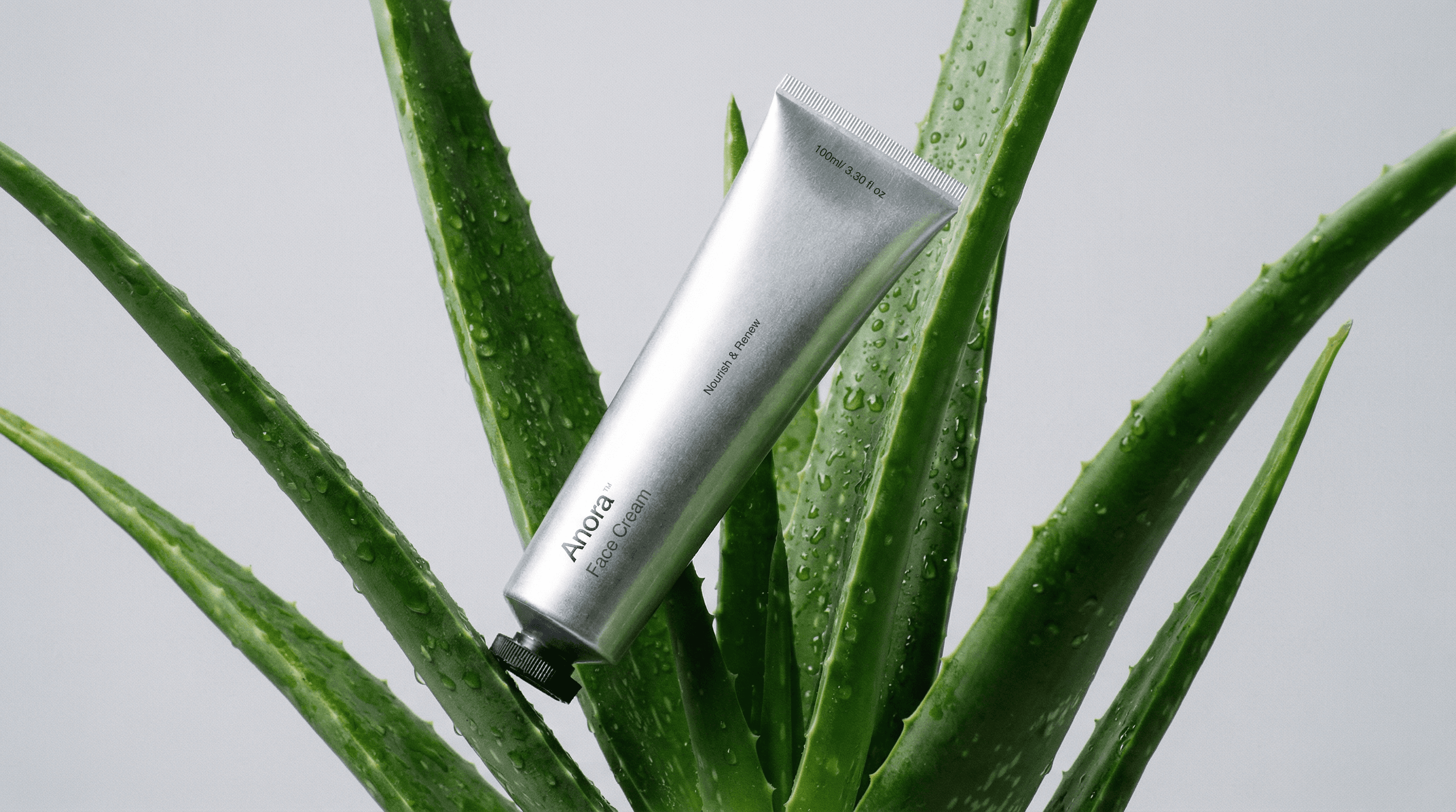 this concept visual serie was created using ai and refined in photoshop to enhance composition, lighting, and overall visual quality. the goal was to explore a clean and modern skincare aesthetic for anora. highlighting the brand’s focus on natural nourishment and modern design. framed by fresh aloe leaves, symbolizing hydration, care, and botanical ingredients while maintaining anora’s clean, minimal aesthetic.